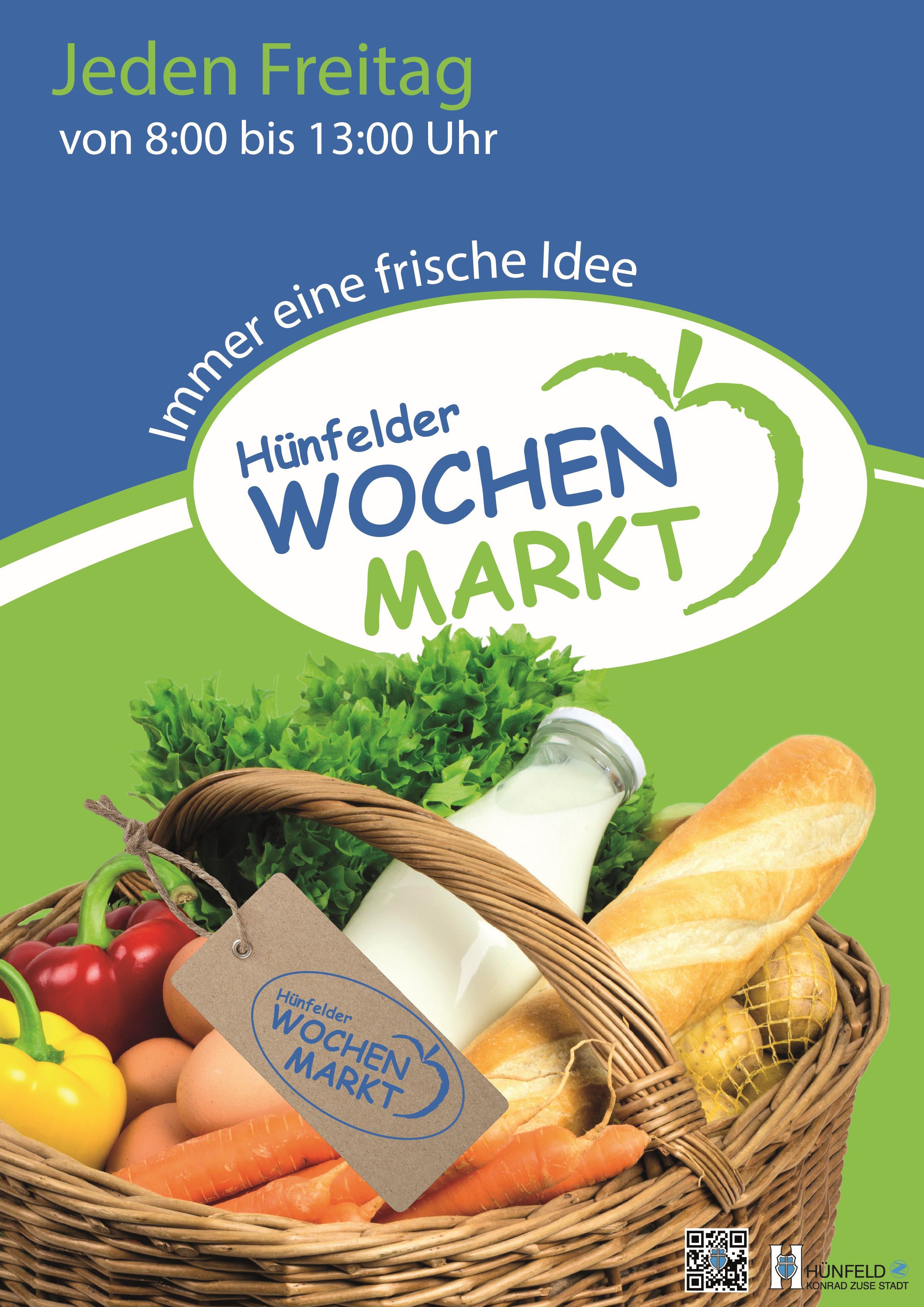Jeden Freitag von 8 bis 13 Uhr ist Wochenmarkt am Hünfelder Anger: Der Duft von frischem Holzofenbrot steigt in die Nase, hausgemachte Wurst liegt in den Auslagen, es gibt Eier, leckeren Fisch, Geflügel, Käse, Obst, Gemüse, Antipasti, Honig, Nudeln, Gewürze, Getränke und noch vieles mehr.