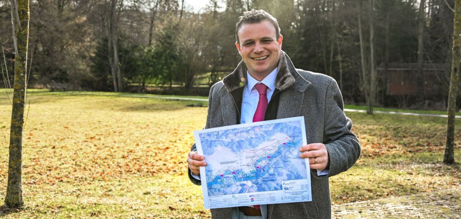 Bei einem Ortstermin mit Stefan Albinger vom Tiefbauamt der Stadt Hünfeld überzeugte sich Benjamin Tschesnok von dem „großen Potential, dieses Areal zu einem weiteren Kleinod in Hünfeld werden zu lassen.“ Die am Parkrand fließende Hasel soll laut der Planung stärker in die Fläche eingebunden werden und auch die Wegeführung werde grundhaft erneuert, wie Stefan Albinger ausführte. Im Zuge von Baumpflegearbeiten wurden bereits jetzt die ersten Weichen gestellt. Der Förderbescheid für die Renaturierung der Hasel liegt bereits vor, die Planungsleistungen hierzu seien ebenfalls abgeschlossen. Die Umsetzung soll im nächsten Schritt in die Vergabe gehen und in Kürze beginnen, sagt Albinger und ergänzt, dass auch die Planungen zur Optimierung der Wegeführung derzeit durchgeführt werden, sodass der Beginn der Baumaßnahmen in den Sommermonaten angestrebt werde.